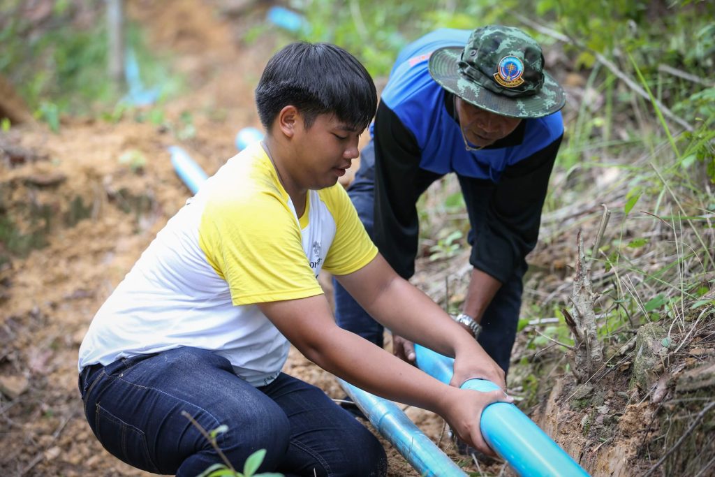 ช่วงเช้าของวันที่ 30 กรกฎาคม 2562 สิงห์อาสา และน้อง ๆ เครือข่ายนักศึกษาสิงห์อาสา ภาคอีสานได้ลงพื้นที่ทำการผู้ใหญ่บ้านหมู่ที่ 2 ต.เทพรักษา อ.สังขะ จ.สุรินทร์ เพื่อมอบน้ำดื่มให้ทุกคนที่มารอต้อนรับเราด้วยสีหน้ายิ้มแย้ม จากนั้นก็ได้เวลาแท็กทีมกับชาวบ้านเพื่อร่วมกันทำประปาภูเขา ด้วยวิธีการใช้ท่อ PVC ที่มีความแข็งแรงต่อท่อยาวมาตั้งแต่บริเวณต้นน้ำในป่า เพื่อให้ทุกคนในหมู่บ้านมีน้ำใช้งานกันอย่างทั่วถึง
