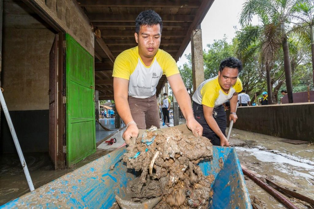 ได้เวลาบิ๊กคลีนนิ่ง! หลังน้ำท่วมสูงกินระยะเวลาเป็นเดือน ก็ได้เวลาที่ชาวบ้านจะกลับเข้าบ้านเพื่อทำความสะอาดดินโคลนกันแล้ว ซึ่งสิงห์อาสาเองก็ลงพื้นที่ทำความสะอาดที่โรงเรียนบ้านไร่ใต้ไปแล้วเช่นกัน และในวันที่ 5 ตุลาคม 2562 ภารกิจของเราก็ได้เริ่มต้นขึ้นอีกครั้ง ในชื่อโครงการ “ผนึกกำลังสิงห์อาสา คืนรอยยิ้มหลังน้ำท่วม” ร่วมกับ ชมรมผู้ประกอบการอาหารจังหวัดอุบลราชธานี เครือข่ายนักศึกษาสิงห์อาสามหาวิทยาลัยราชภัฏอุบลราชธานี มหาวิทยาลัยอุบลราชธานี และคณะครู นักเรียน จากโรงเรียนบ้านหาดสวนยา