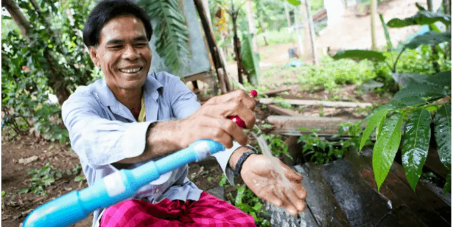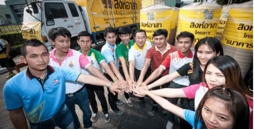 การสร้างเครื่องมือบรรเทาปัญหาอย่างยั่งยืนร่วมสร้างท่อประปาลำเลียงน้ำจากภูเขาลงมายังหมู่บ้านในพื้นที่ อ.สังขละ จ.สุรินทร์ การติดตั้ง “ธนาคารน้ำสิงห์” เป็นแทงค์น้ำ ขนาด 200 ลิตร จำนวน 4 แทงค์ ให้แก่ชาวบ้าน ในพื้นที่หมู่บ้าน โคกแปะ และหมู่บ้านบูรพาพัฒนา ต.โคกสีทองหลาง อ.วาปีปทุม จ.มหาสารคาม ได้ใช้อุปโภคบริโภคคืนรอยยิ้ม สู่ชาวบ้าน
