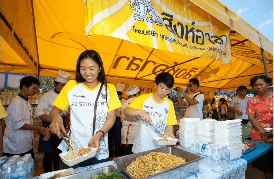 เมื่อบุคลากรทางการแพทย์มีภารกิจล้นมือจนแทบไม่มีเวลาดูแลตัวเอง สิงห์อาสาจึงเข้ามาเป็นฟันเฟือง ในการดูแลคุณภาพชีวิตของนักรบเสื้อกาวน์ ด้วยการนำ “อาหารพร้อมรับประทานจากร้านอาหารในเครือ ข้าวรีทอร์ท อาหารแช่แข็งพร้อมตู้แช่และน้ำดื่ม” ไปมอบให้แก่โรงพยาบาลต่างๆ เพื่อเป็นการดูแลอำนวยความ สะดวกให้บุคลากรการแพทย์ทุกคนที่ปฏิบัติงานได้อิ่มท้องในแต่ละมื้อทุกวัน อีกทั้งยังนำอาหารและน้ำดื่มเข้าไป เติมให้เต็มตู้อย่างต่อเนื่องเป็นการดูแลอำนวยความสะดวกให้บุคลากรการแพทย์ทุกคนที่ปฏิบัติงาน